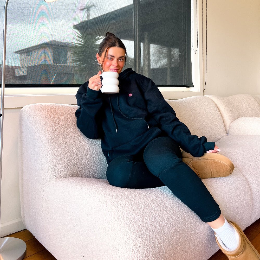 De Heathoody™ is een comfortabele, draagbare hoody met ingebouwde verwarmingselementen. Hij biedt direct warmte en comfort, perfect om thuis of onderweg te loungen. De verwarmingsfunctie werkt op een oplaadbare batterij, zodat je overal warm blijft.