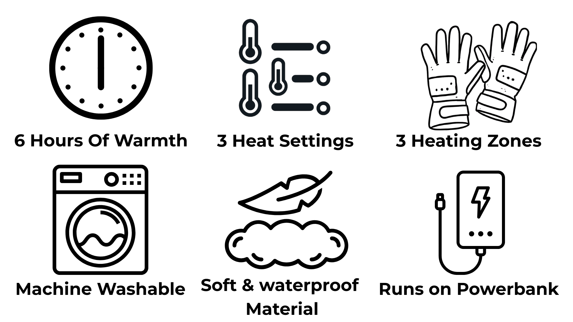 Choose your ideal heat level with three adjustable settings. The soft, flexible material feels like a second skin, while the rechargeable power bank delivers up to 6 hours of cozy warmth.